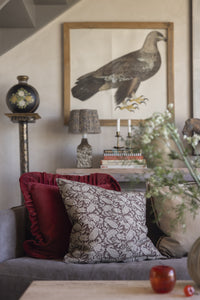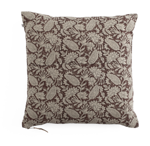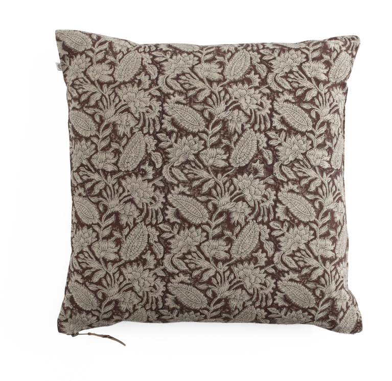 This brown Jodhpur print cushion combines quality linen with traditional woodblock printing techniques. Features a durable zipper with leather detailing for added style and functionality. Each pattern is carefully hand-printed, creating a unique decorative accent for your home. Cushion insert not included.